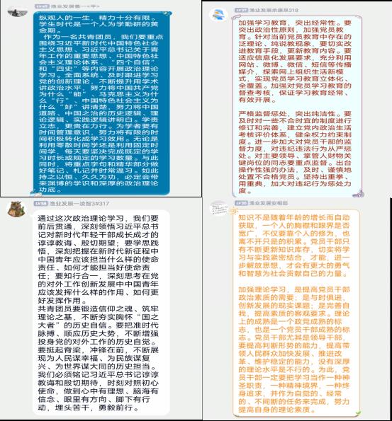 会议中,同学们积极参与讨论,认真学习习近平的思想和党的理论方针,随后同学们纷纷分享了自己的学习心得,并表示在未来会积极传播中国文化,争做文明,有志的当代新青年,为实现中华民族伟大复兴贡献力量。
