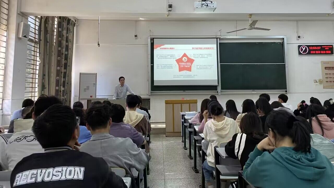 不忘来时路,才能走好未来路。党委副书记孙恺以《习近平的七年知青岁月》一书为课程主线,从概述,学习解读,深刻内涵及伟大意义等四个方面进行讲解,带大家了解习近平总书记青年时期扎根陕北黄土高原,为当地人民谋福利,为当地经济谋发展的桩桩事迹,带大家感受总书记矢志不渝的理想追求和爱国为民的家国情怀。“解衣推食”、“奖品换农具”,一件件实事被孙书记娓娓道来,同学们也仿佛被拉回到那片黄土地,亲临其中。