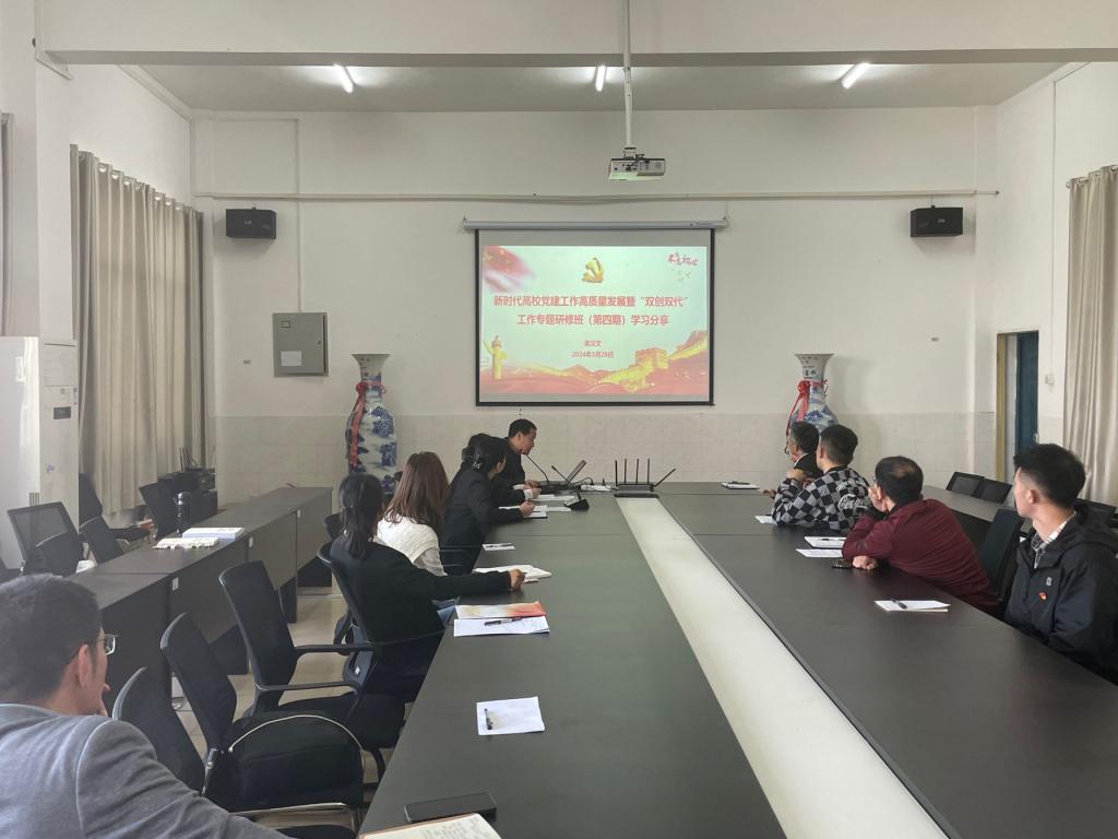学习交流环节,袁汉文老师和梁雄燕老师分享了《新时代高校党建工作高质量发展暨“双创双带”工作专题研修班》学习体会。会议还对2024年学院意识形态工作进行了部署,解读了责任书的分解情况和重要指标的推进举措。