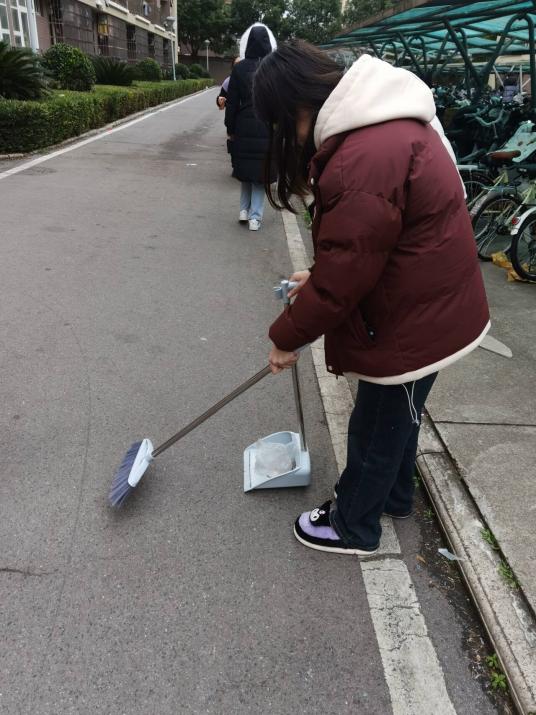 此次活动由安竑羡组织,她带领动医类32303班全体人员有条不紊地进行。到达指定时间和地点之后,安竑羡根据人数分组,划分区域进行打扫。阳光明媚的天气,同学们借助扫帚等清扫工具清扫里仁堂,经过不懈努力后,规划区域变得干干净净,一尘不染。