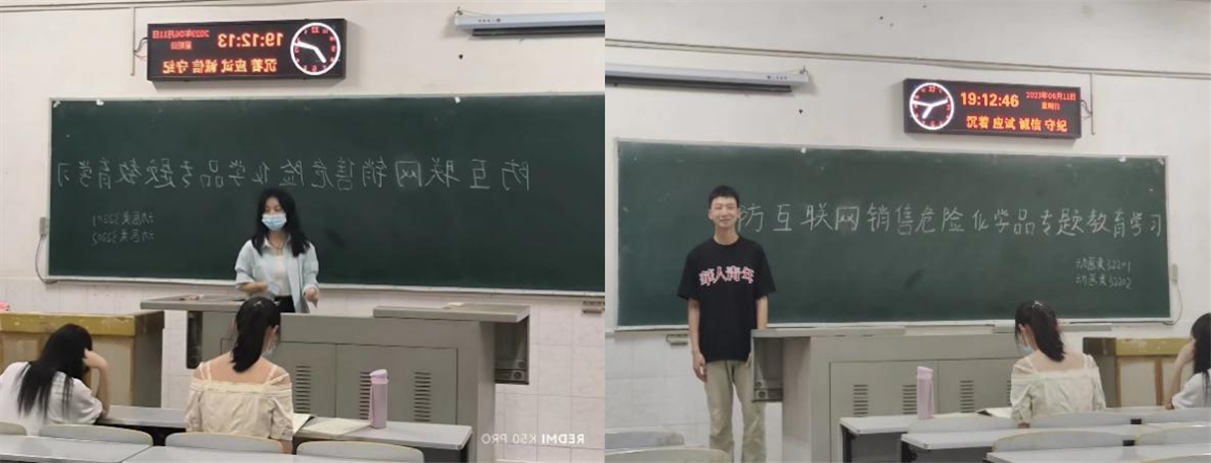 活动伊始,由各班班长宣读《防互联网销售危险化学品专题教育》的学习材料,并对危险化学品科学知识进行普及,切实加强危险化学品互联网销售监督,让同学们坚决遵守打击违法犯罪行为,有效防范重大安全风险。