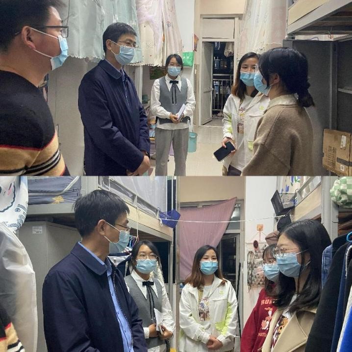 来到省外学生的寝室熊书记详细询问了在校期间是否及时跟家里联系,是否吃的惯湖北的饭菜,上网课习不习惯,并且鼓励学生把对家乡和父母的思念藏在心底,转化成学习的动力,将来好好报答他们。在询问到高年级同学时,熊书记鼓励同学们考研、考公、考教资,询问了学生的毕业趋向问题,热心地为学生提建议。