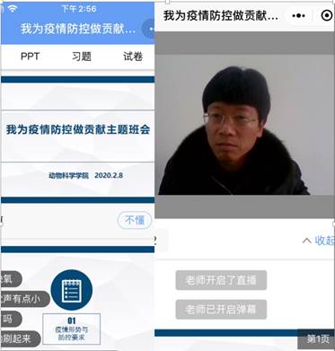 为深入贯彻落实习近平总书记关于打赢疫情防控阻击战重要指示精神,根据学校教务处、学工部“停课不停学 学习不延期”的总体要求,开云官网于2月8日通过“雨课堂”直播的方式面向全院800余名本科生及班主任、辅导员召开了“我为疫情防控做贡献”主题班会。班会内容分为“疫情形势与防控要求”、“疫情相关知识介绍”以及“我为疫情防控能做些什么”三个部分,由动物医学专业教师李鹏副教授主讲,各年级同学通过弹幕、在线测试等方式与主讲教师进行互动。