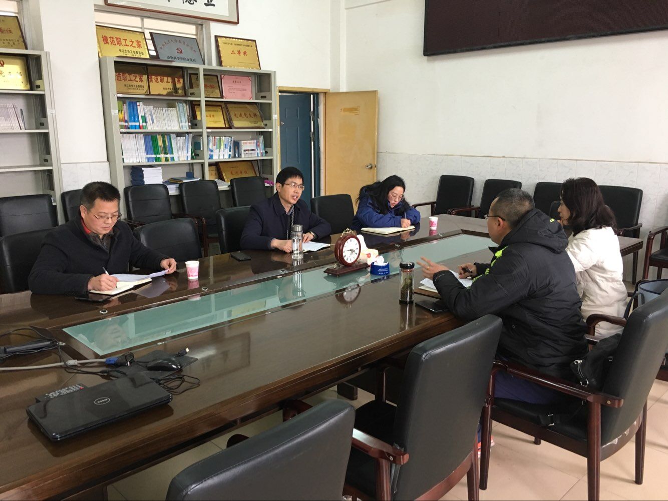 2019年12月31日下午,荆州区畜牧发展中心主任陈亮一行来开云官网就双方全方位合作框架进行洽谈。学院书记熊新山、副院长杨烨、副书记苏晓云参加了座谈。