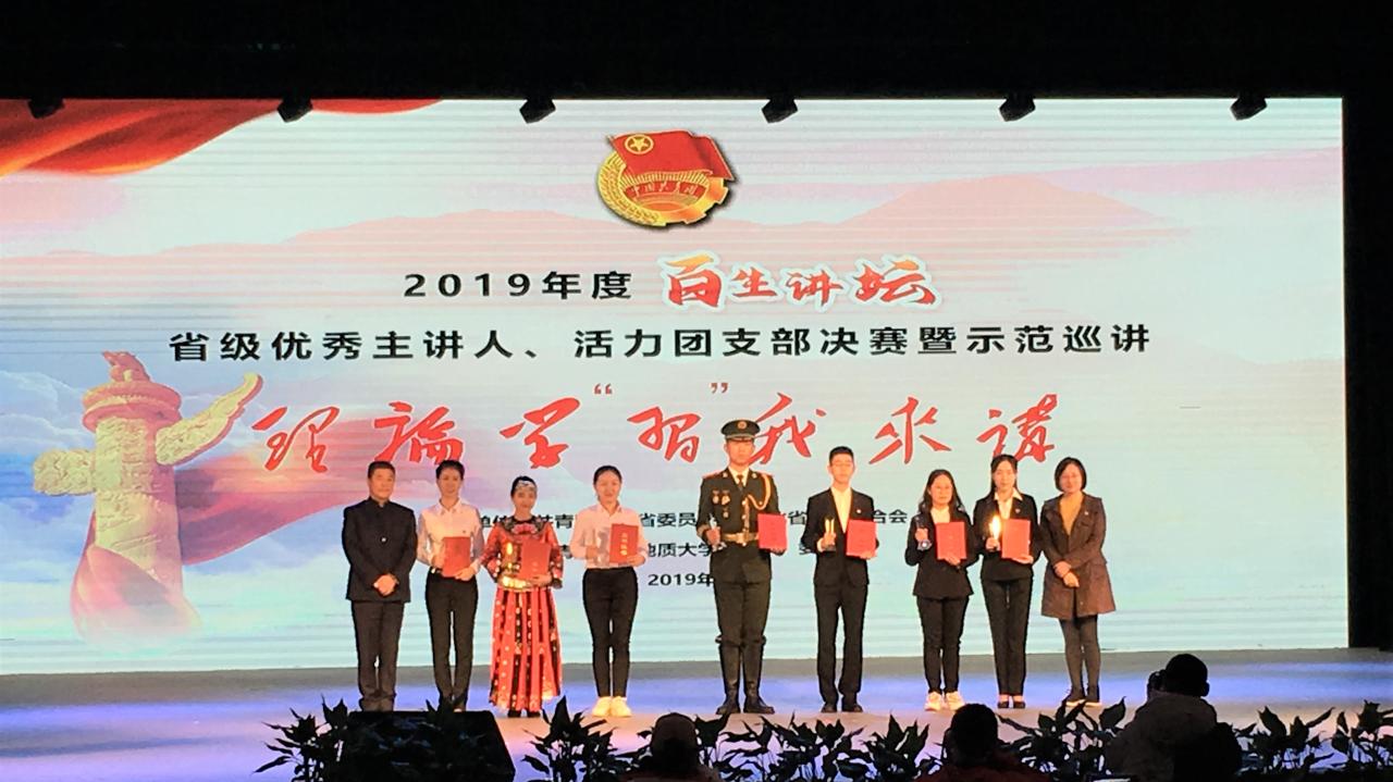 (通讯员:卢倩)12月8日上午,2019年度湖北省“百生讲坛”——共青团学习贯彻习近平新时代中国特色社会主义思想活力团支部、优秀主讲人决赛在中国地质大学(武汉)举行,动物科学学院动医卓31801班范虹宇同学荣获省级优秀主讲人之金牌主讲人称号及决赛二等奖。