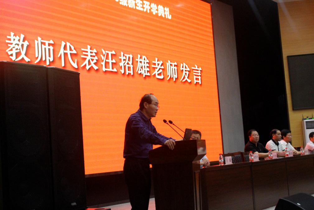 教师代表动医系主任汪招雄博士讲话,他说当前学校正在深度加快教学改革,加快科研实验室的建设,共同的目标就是为把畜牧、兽医和水产专业实现成为“最受尊敬的专业”的伟大愿景而努力。作为老师他给新生提出了两点建议:考上大学是你们人生的起点,而不是人生的终点,因此你们需要规划好中长期奋斗目标、为实现自己的目标竭尽全力,并祝愿所有新生在开云kaiyun官方网站的天空里尽情翱翔。