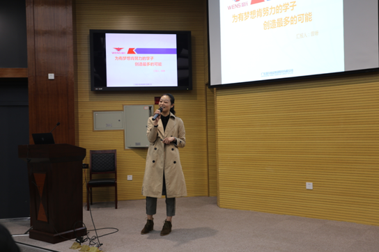 广东温氏集团的曾珊,要为有梦想肯努力的的学子创造更多的可能,激励着每一位在场学子不断为梦想而奋斗;