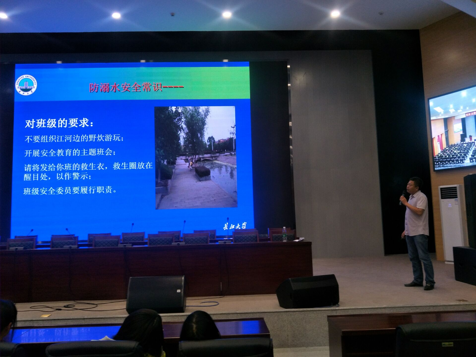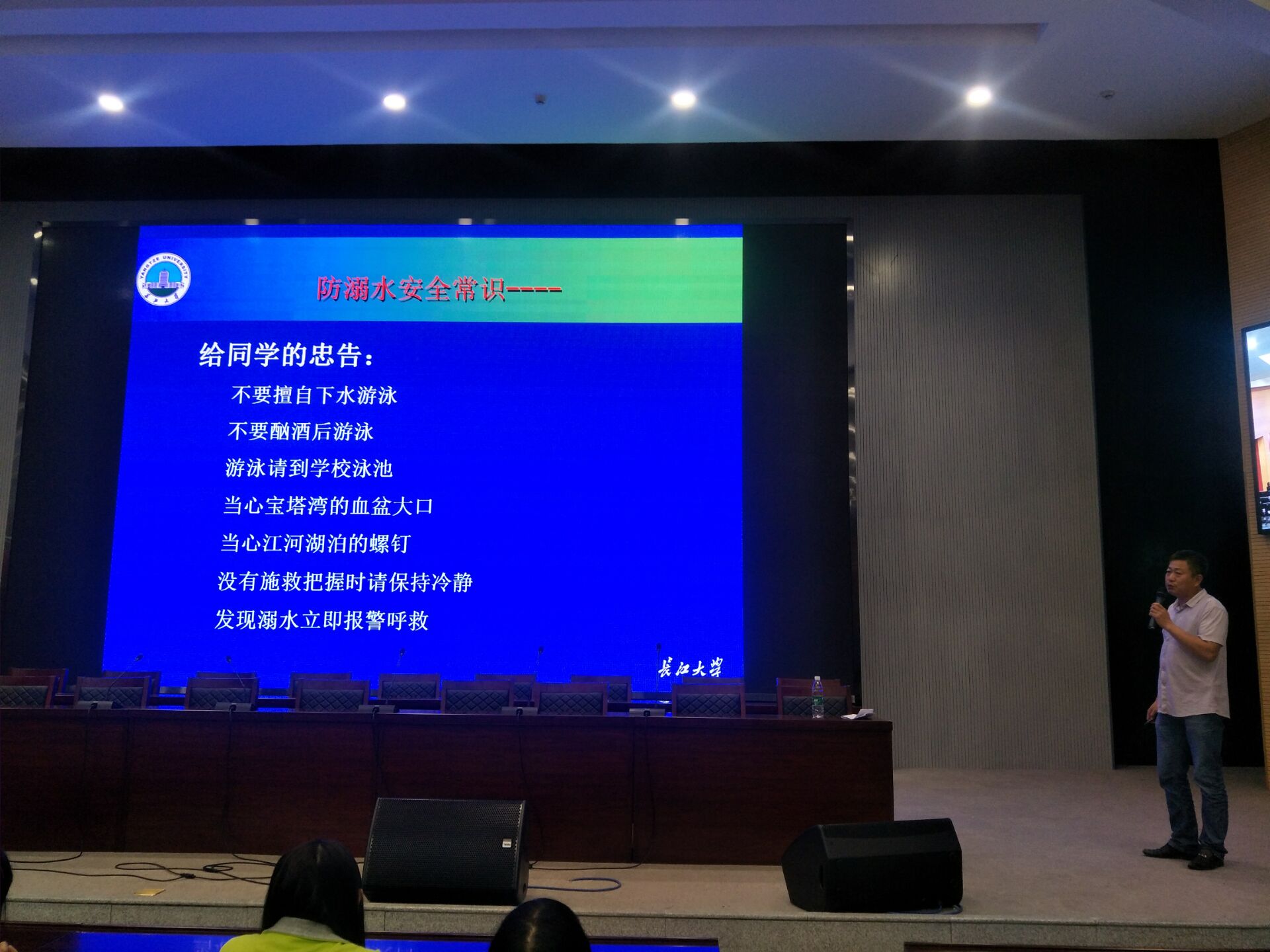 本次大会由党委副书记王雨主讲,王雨副书记从防火、防溺水,防电信诈骗、防传销等角度,结合校园周边及近期发生在学生身边的典型案例,给同学们作了详细讲解。特别强调,班级要积极开展安全教育主题班会,不得组织在近水区域的班级活动;学生个人,不得到江河湖叉游泳,需要游泳的同学,请到有安全措施的游泳池。希望同学们提高安全意识,学会保护自己,做到人人平安。