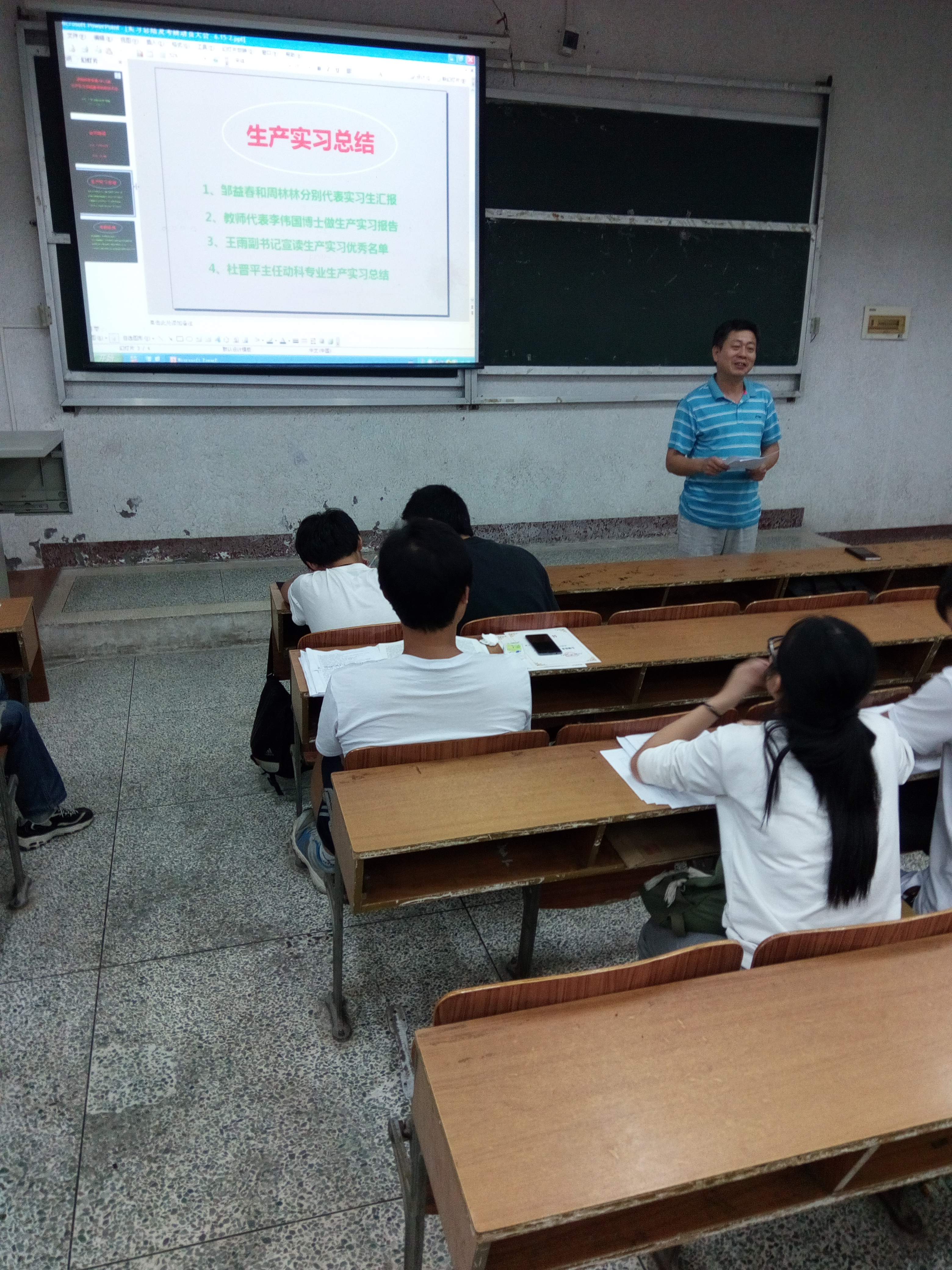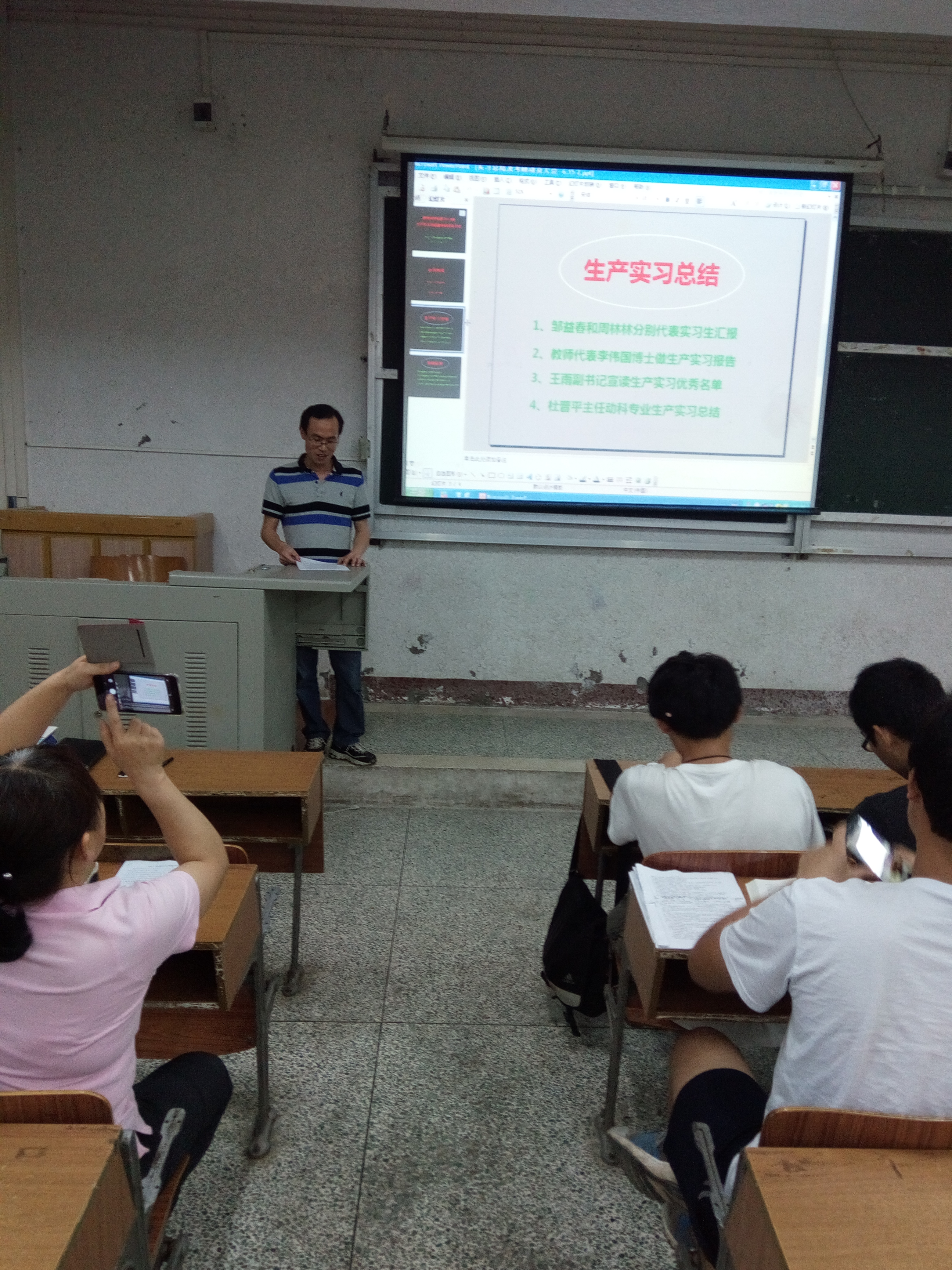 2017年6月15日下午4点,在西校区5-203召开动科专业2014级生产实习(合作教育一)总结及表彰大会。邹益春和周林林作为学生代表首先汇报了生产实习情况。李伟国老师做了生产实习报告。王雨副书记首先对同学们完成生产实习和平安回校表示祝贺,并宣读了生产实习优秀指导老师(3人)、实习小组(4个)和学生(16人)名单。李鹏副院长对动科专业生产实习进行了总结,对生产实习中表现优异的老师和学生进行鼓励,对出现的问题进行了分析,对动科专业学生圆满完成生产实习表示祝贺。生产实习总结大会后进行了2014级考研动员。许巧情副院长、杨烨老师、张佳兰老师、唐登华老师、杜晋平老师等参加上述会议。