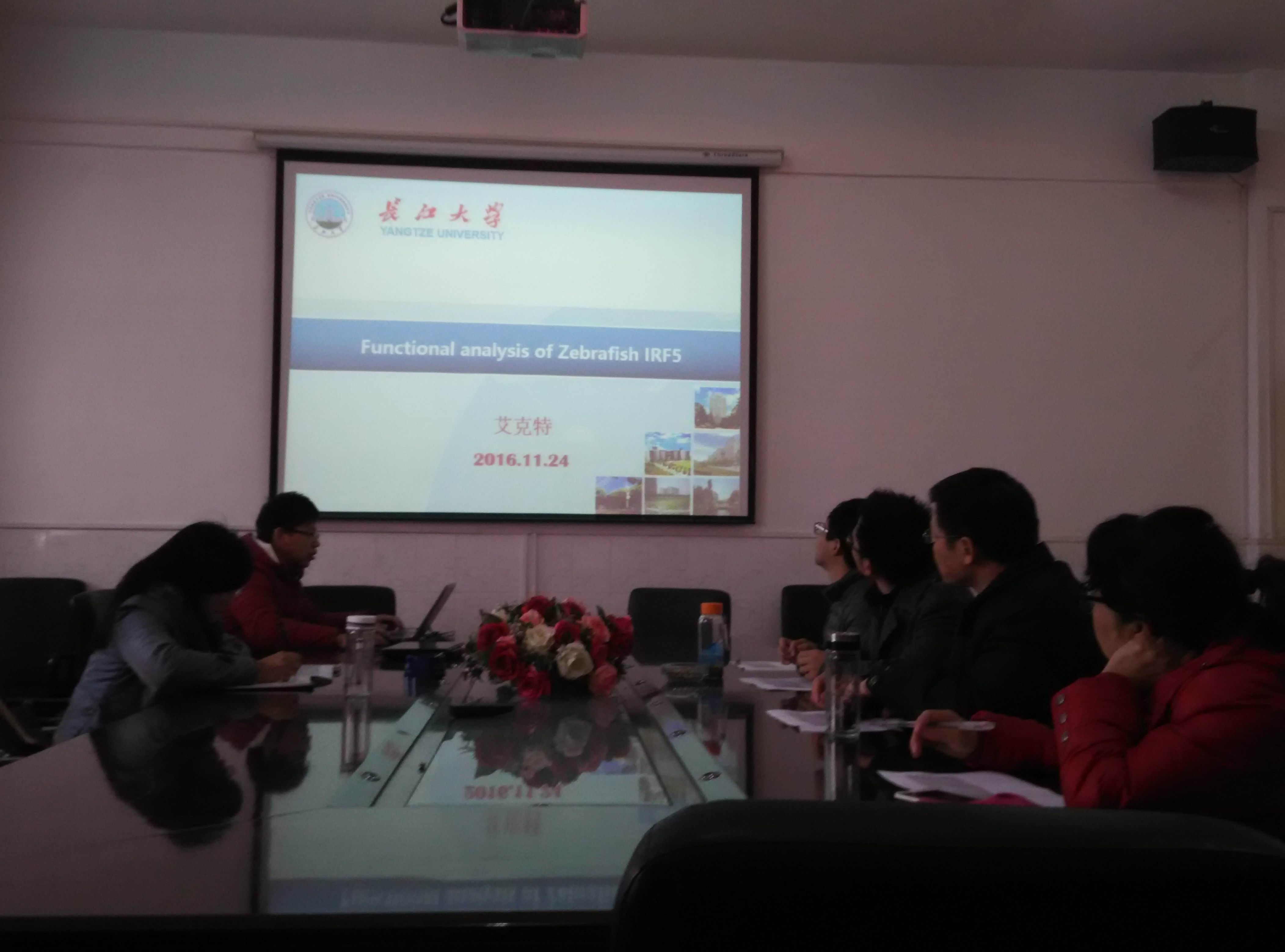 研三2位学生艾克特、郭坤分别讲述了IRF5在斑马鱼中的功能研究和R语言在生态学中的应用。两位学生都在各自领域研究深入、细致,成果丰硕,分别发表了SCI和EI,这是动科院学生首次在SCI及EI上发表研究成果,给全院学生树立了标杆。
