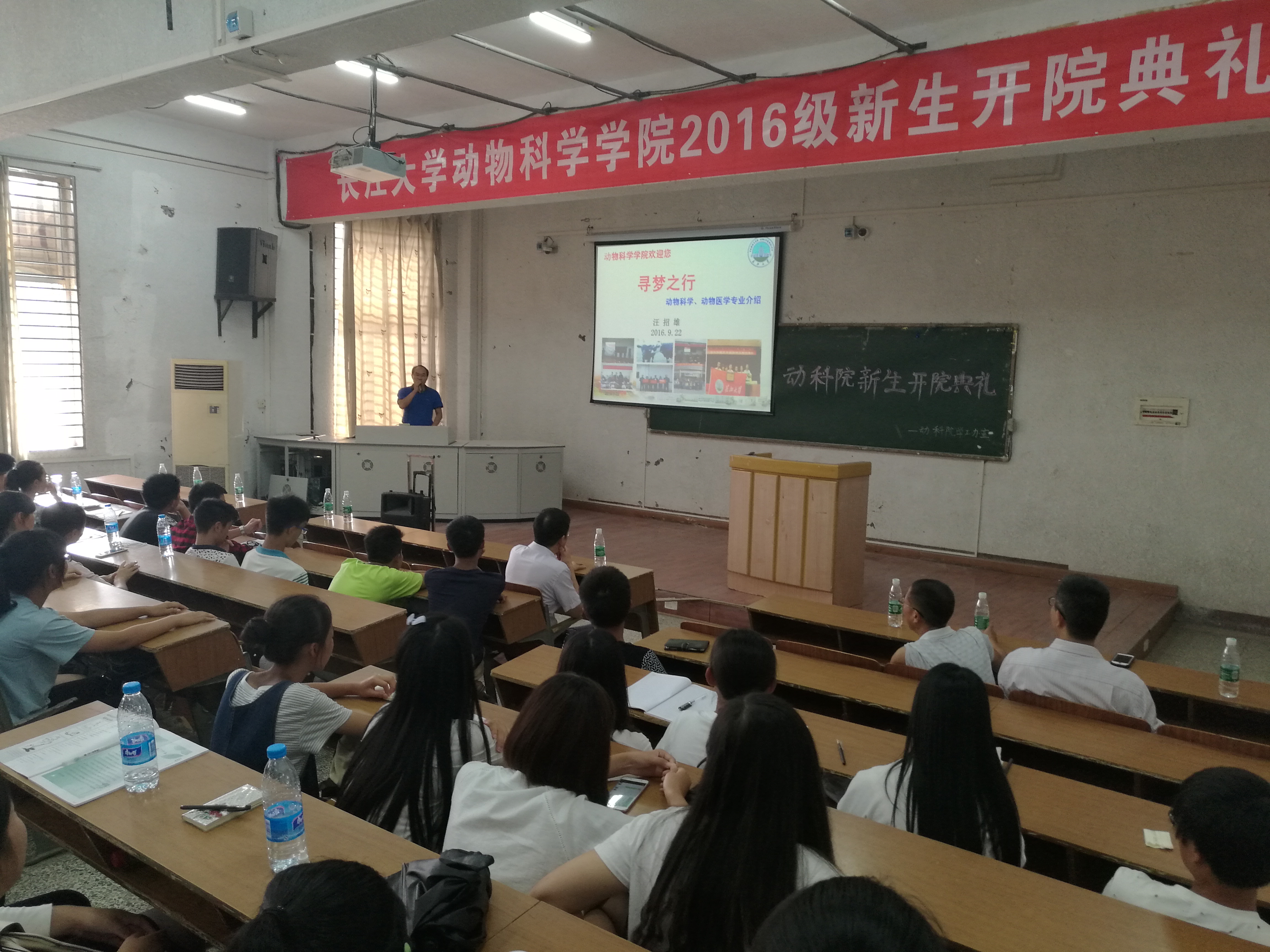 (通讯员邬振华)9月22日下午时2时30分,开云官网2016级新生开学典礼在5教203教室隆重举行举行。院长杨玉莹、党委书记王凌华、副院长许巧情、副院长李鹏、党委副书记王雨及部分教授、博士以及动物科学学院2016级全体260名新生共同参加此次开学典礼。会议由党委副书记王雨主持。