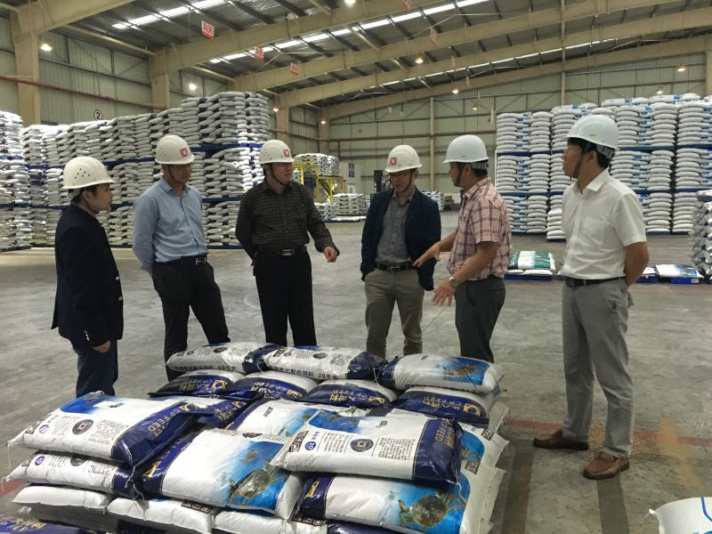 院长杨玉莹一行参观考察了正大集团在内陆建设的最大专业化水产饲料厂,公司方铭厂长从原料库、生产车间到成品库、从建设投资1.5亿到年产值10个亿做了详细的讲解。