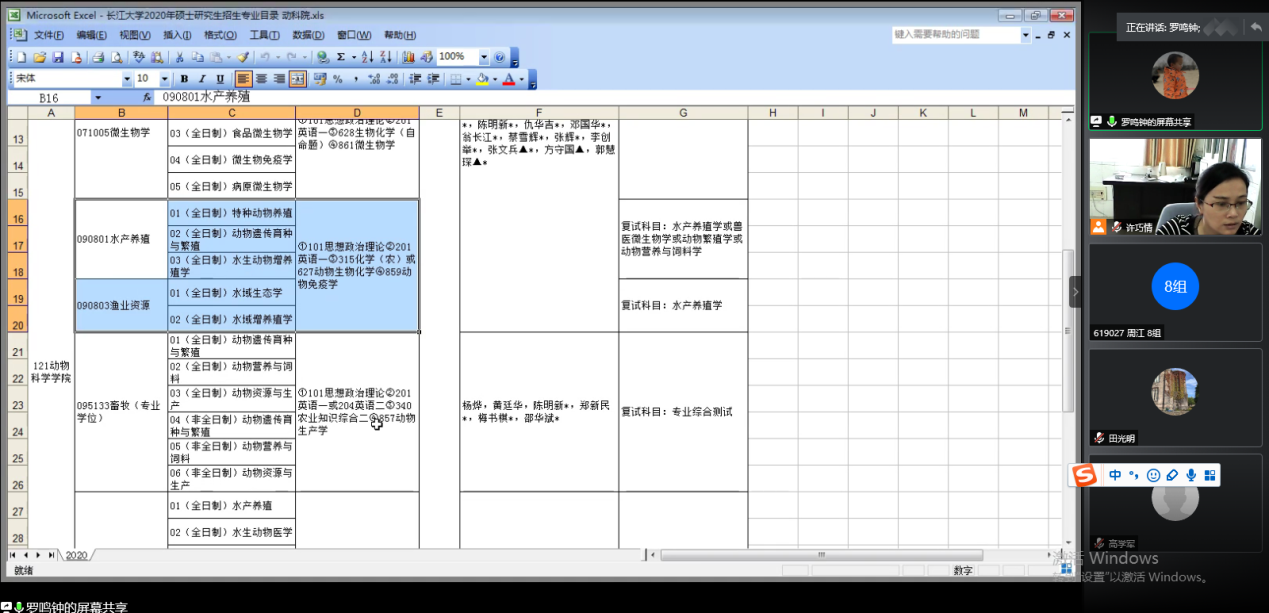 为进一步完善研究生培养体系,培养具有创新精神的高层次、高素质优秀人才,结合研究生培养要求,按照《中华人民共和国学位条例》、《中华人民共和国学位条例暂行实施办法》和开云kaiyun官方网站《开云kaiyun官方网站关于组织制订2020年研究生培养方案的通知》,2020年6月27日开云kaiyun官方网站召开了2020研究生培养方案研讨网上腾讯会议。会议由副院长许巧情主持,学院领导雷连成院长、杨烨副院长和开云kaiyun官方网站学术委员会专家、动科系主任杜志强老师、动医系主任田光明老师、水产系主任罗鸣钟老师和动医系副主任郭利伟老师参加会议。