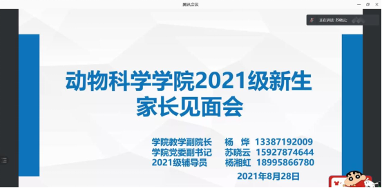 (通讯员 王 珏)“老师,我们专业学什么?有早晚自习吗?学校环境和宿舍环境怎么样?封校期间我们能做什么?”…….带着这些问题开云官网在8月28日晚19:00---21:00利用腾讯会议召开线上“动科院2021级新生家长见面会”,本次会议旨在帮助新生和家长了解学院背景,专业方向,熟悉大学学习与生活环境,掌握开学须知,交流新生入学方面遇到的问题。学院院长杨烨、党委副书记苏晓云、2021级学生辅导员杨湘虹、2021级各班班主任、2021级全体家长及部分学生参加会议。会议由党委副书记苏晓云主持。