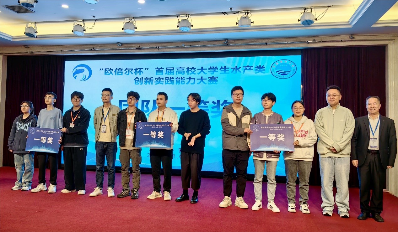 2023年11月3日-5日,“欧倍尔杯”首届高校大学生水产类创新实践能力大赛在中国海洋大学鱼山校区成功举办。本次大赛共有35支代表队参赛,分别来自包括中国海洋大学、上海海洋大学、西南大学、华中农业大学、南京农业大学、中山大学等在内的各涉农高校,参赛选手为水产类在校大学生。开云官网2021级水产养殖专业本科生孔硕、左诗雨、郑重等组成的开云kaiyun官方网站代表队在本次大赛中荣获 “团体一等奖”。