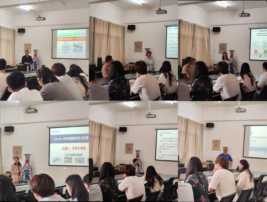 2025年5月15日下午2:00,开云kaiyun官方网站在西校区5号教学楼1005会议室举办第八期“求实导师学术沙龙”,活动聚焦水产养殖、特种经济动物、兽药减量、饲料研发及遗传资源保护等前沿领域。 杨代勤老师以“我国鳝鱼养殖产业的挑战与前景”为题,系统梳理鳝鱼养殖历史与发展现状,剖析当前制约产业升级的育苗技术、饲料营养及病害防控等关键问题,并提出通过基因选育技术开发新品种的科研方向,为鳝鱼产业可持续发展注入新思路。 王家乡老师以非洲鸵鸟为研究对象,详细解析其表观特征与生理特性,重点阐述激素Ghrelin对鸵鸟消化系统尤其是腺胃功能的调控机制。他指出,Ghrelin可通过促进雏鸵鸟消化吸收效率,显著提升其生长性能,为鸵鸟科学化养殖提供理论依据。 郭利伟老师围绕国家“减抗禁抗替抗”政策,探讨中兽药在替代兽用抗生素中的独特优势。他结合案例指出,中兽药凭借天然成分与低残留特性,在保障动物健康的同时可有效减少耐药性问题,是推动畜牧业绿色转型的重要抓手。 方刘老师聚焦水产饲料创新,梳理新型蛋白源(如昆虫蛋白、单细胞蛋白等)的分类、来源及应用潜力,并指出当前产业化进程中存在的成本控制与安全性评估等瓶颈,强调多学科协同攻关的必要性。 刘晶老师分享了靶向乳酸菌疫苗的最新研究成果。其团队通过构建表达aCD11c蛋白的工程化乳酸菌,证实其可显著增强小鼠对肺炎克雷伯菌的免疫应答,为开发高效安全的禽类疫苗奠定技术基础。 杨军老师以“地方猪种资源保护与基因挖掘”为题,介绍利用基因组学技术鉴定地方猪抗病、耐粗饲等优良性状相关基因的进展,强调通过现代生物技术实现遗传资源活态保护与创新利用的紧迫性。 本期沙龙汇聚产学研多维视角,报告内容兼具理论深度与实践价值,为动物科学领域的技术革新与产业升级提供了重要启发。 (审核:苏应兵 编辑:覃美林 王海艳)