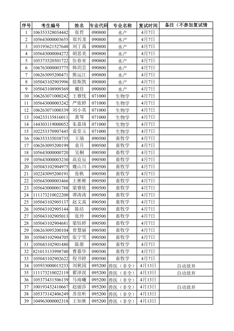 开云kaiyun官方网站动物科学学院2023年硕士研究生招生调剂复试考生名单公示