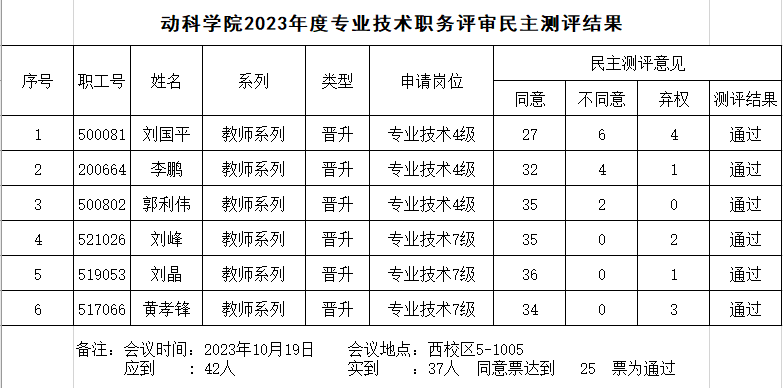 2023年开云kaiyun官方网站职称评审民主测评结果