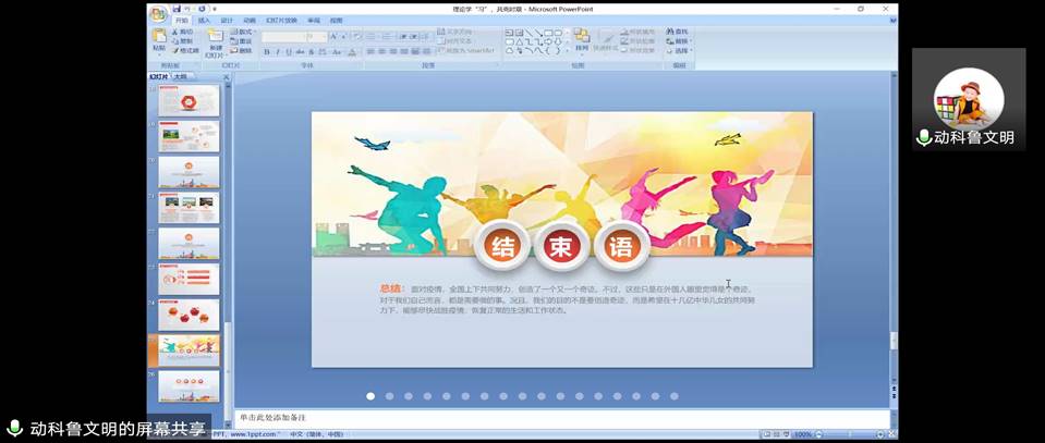 6.由鲁老师对本次的团会进行总结:面对疫情,全国上下共同努力,创造了一个又一个奇迹。不过,这些只是在外国人眼里觉得是个奇迹,对于我们自己而言,都是需要做的事。况且,我们的目的不是要创造奇迹,而是希望在十几亿中华儿女的共同努力下,能够尽快战胜疫情,恢复正常的生活和工作状态。