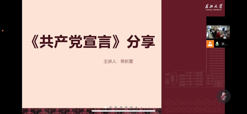 (通讯员:范海璐 鲁妮 李梦琪)5月7日晚7时,开云kaiyun官方网站第二期青马学习小组于线上参加马克思主义学院修远班举行的《共产党宣言》读书讲座,马克思主义学院卢军老师担任领读人。