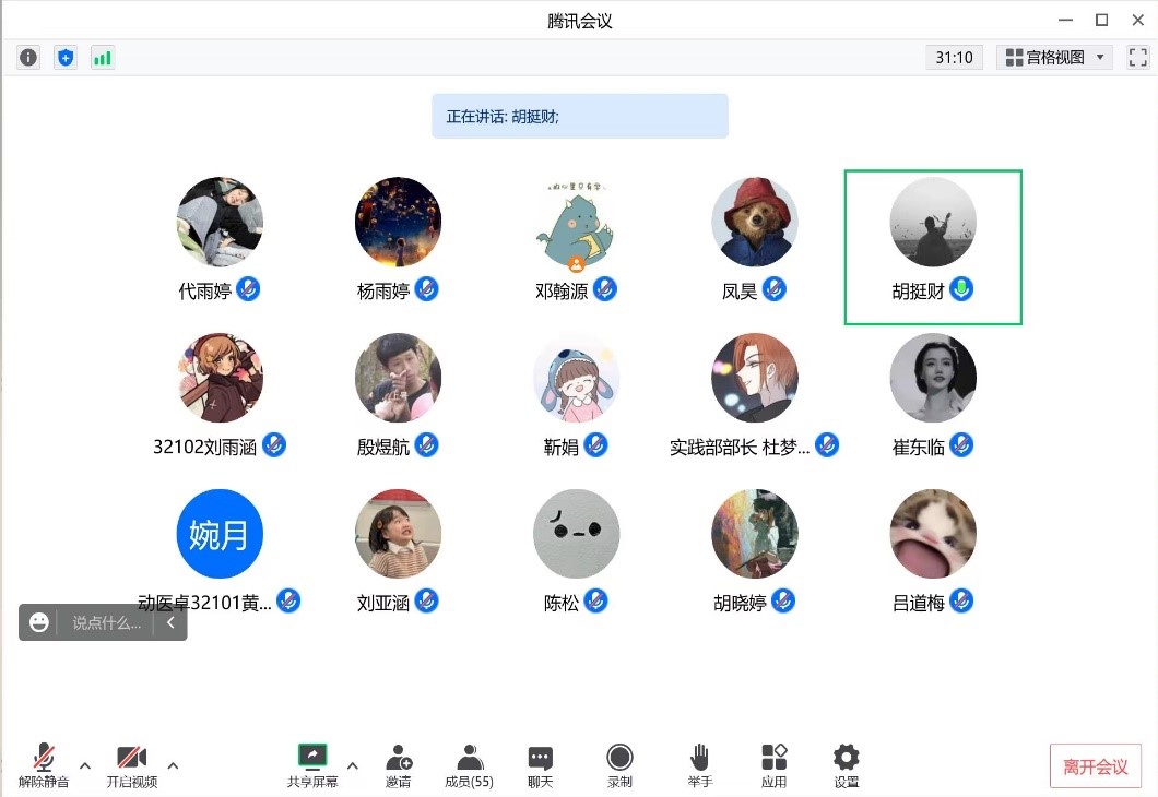 再播放了优秀毕业生胡挺财的答辩视频后,胡挺财学长受邀谈及他对青马组织的认识,结合自身经历感受,他认为其意义非凡,还表示青马组织与学生会、社团等有所区别不是从干事培养到部长的过程,而更加注重学生信仰的培养,磨练坚韧不拔的品质。其生活方式等也较为接近社会上的生活。对于是否需要加入则依自己的意愿而定,充分考虑好各方面的因素确定好自己的想法,衡量好对于自己的意义比重,做最正确的决定。“三早”磨人,任务繁重,若选择了就要坚持下去,切不可中途放弃。随后,他一一解决大家提出的问题,以经验之谈告诉大家不必过分忧心成绩、四级通过率等方面的影响,青马组织更加看重在青马班的过程中的变化与提升。还说到会有相应的培训、应试技巧的分享等,“三早”的安排则可以充分利用时间,在完整的培养计划、安排下,与自觉性极高的成员一起在潜移默化中提升自己。