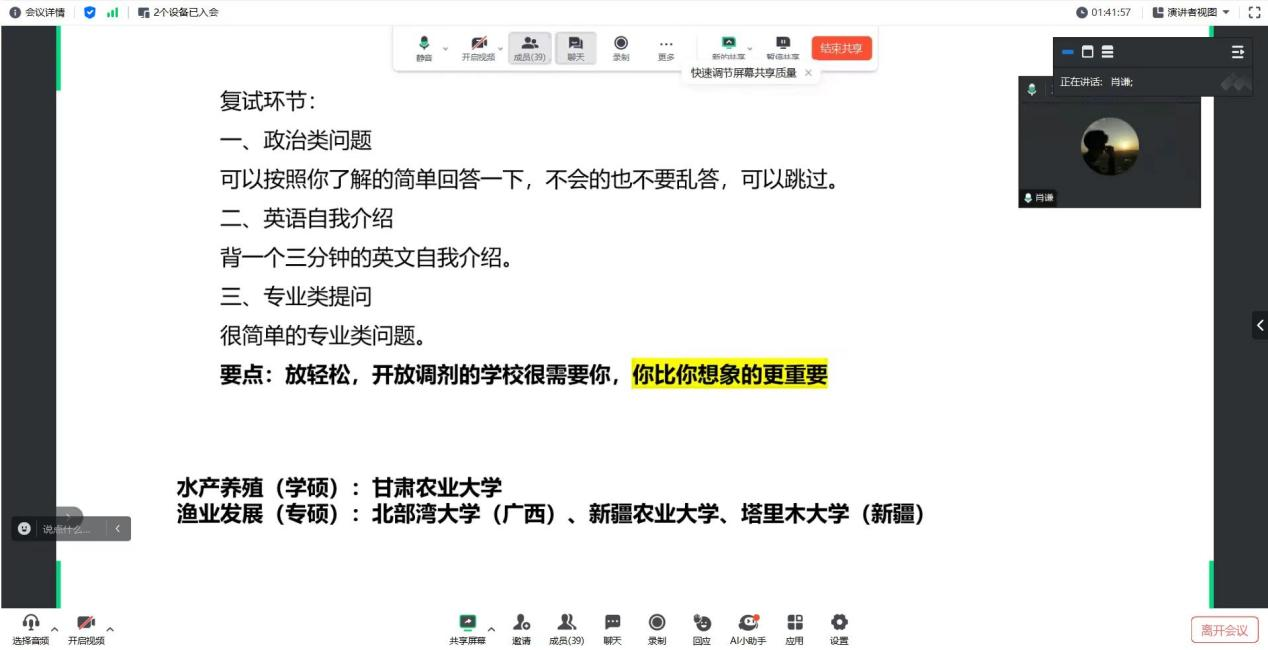 本次交流会延续了学院“备考—复试—升学”全链条支持传统。杨湘虹表示,学院将进一步开放模拟面试预约通道,并组织硕士生导师团队为考生提供一对一辅导,确保个性化指导落地。
