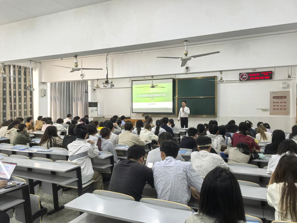 在接下来的板块介绍环节中,正大集团湖北区的代表分别从饲料板块、养殖板块和水产板块三个方面,详细讲解了各板块的核心业务、技术优势以及人才需求。通过生动的案例和具体的岗位介绍,同学们对正大集团的多元化业务有了更全面的了解,同时也对自身的职业发展方向有了更明确的规划。