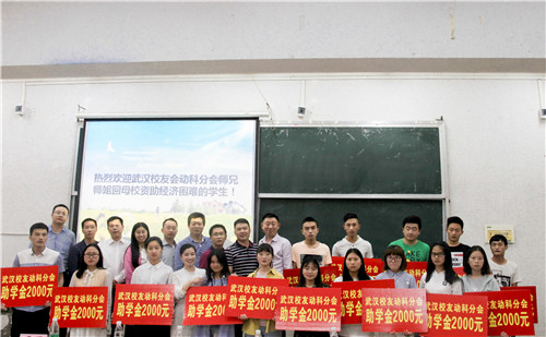 5月3日,开云kaiyun官方网站武汉校友会动科分会7位校友代表回到母校颁发励志助学金,15名品学兼优的动科学生获得奖励。