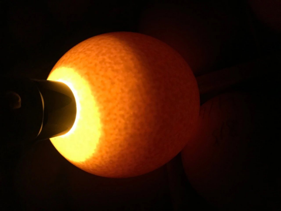 照蛋工作入孵种蛋同时进行,室内光线暗有利于看清蛋内胚胎发育情况,整个孵化期间共照蛋四次。能较清晰地判定无精蛋和受精蛋及胚胎发育情况。