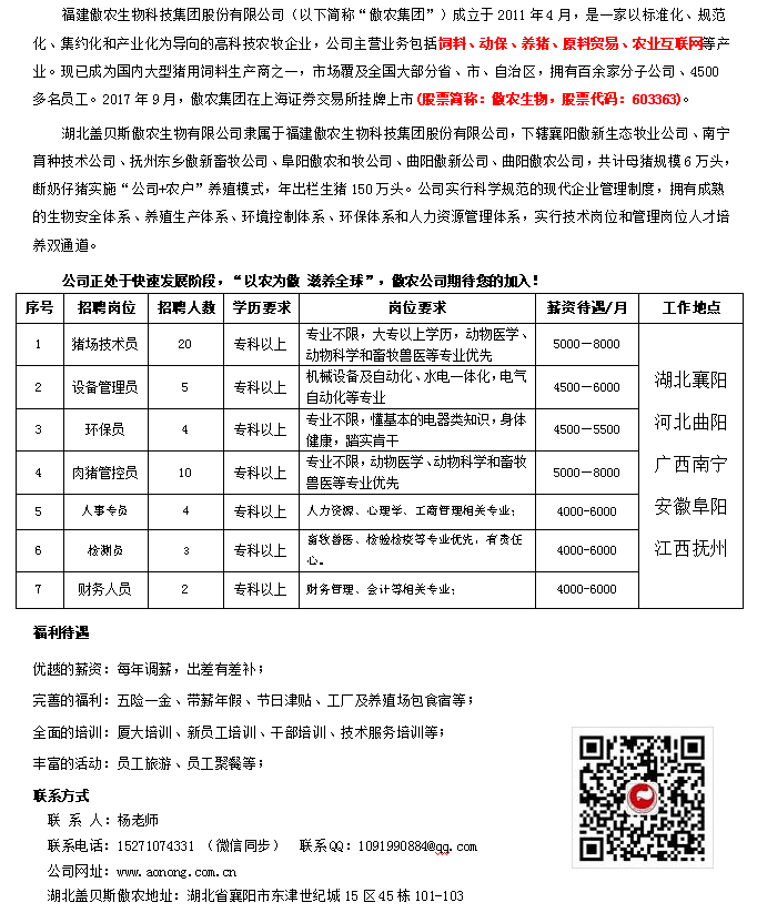湖北盖贝斯傲农集团招聘简章