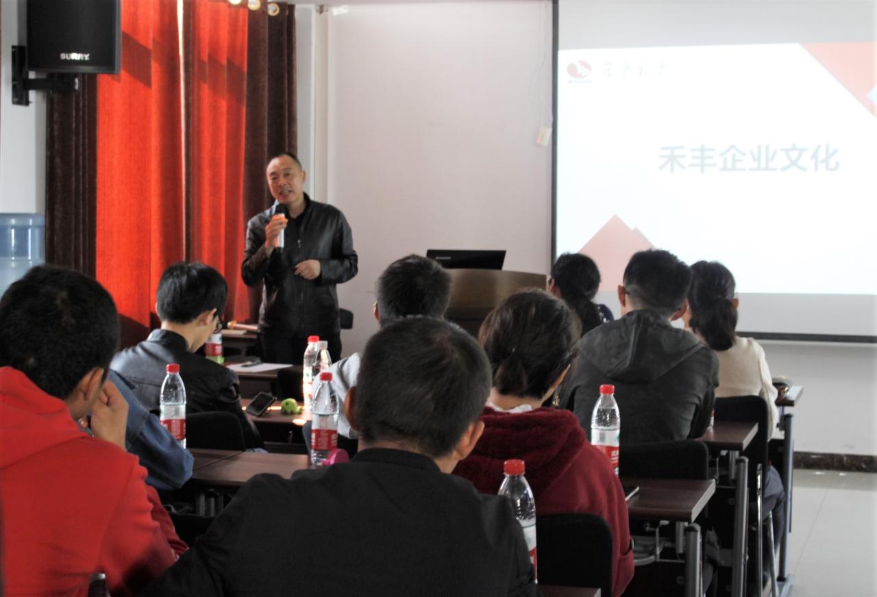 参观完毕,师生来到企业会议室。曾经理进行了公司发展及现状的介绍,称道正是有了禾丰人的理想和抱负,企业才能走的如此长远,同学们对此表示一致赞同。咨询环节中,曾经理表明了禾丰集团招聘人才的要求:首先看人品,其次是学习的意识和能力,最后是对工作职位的配合度。最后,苏书记进行总结:企业的核心竞争力是科研实力,学生的核心竞争力是学习,无论在企业、事业或是生活中,一个人的力量是渺小的,学会团队合作是一件非常重要的事。