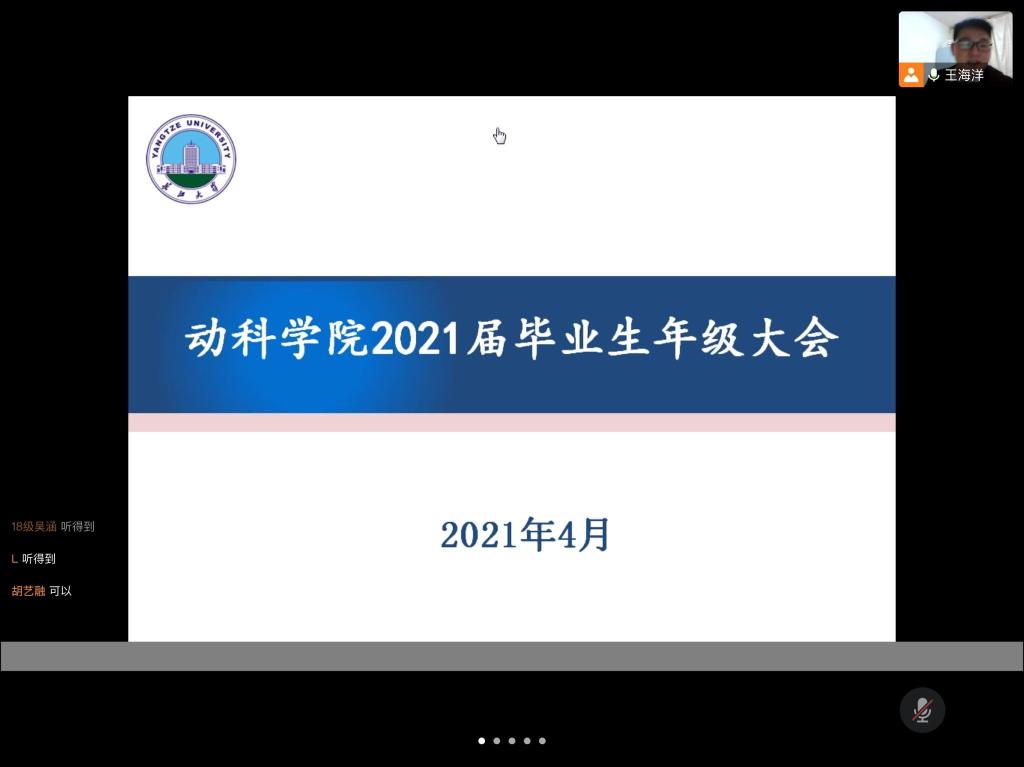 (通讯员:王海洋)为了让2021届毕业生了解当前严峻的就业形势,把握好每一次就业机会,根据学校毕业生就业指导中心安排统筹部署湖北省近期事业单位招考、中小学教师公开招聘等报名工作,4月8日19:00开云kaiyun官方网站召开2021届毕业生年级大会,学院党委副书记苏晓云,辅导员王海洋,兼职辅导员喻泽坤,全体2021届毕业生参加,会议由辅导员王海洋主持。