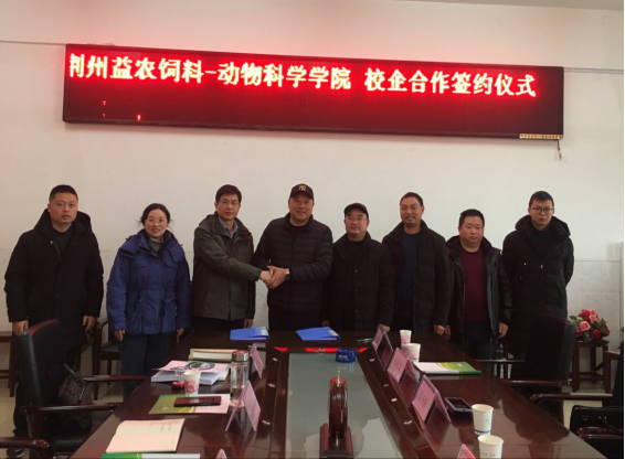 11月29日上午,动物科学学院与荆州益农饲料有限公司校企合作签约仪式于五教807举行。学院党委书记熊新山,院党委副书记苏晓云,水产系主任罗鸣钟,荆州益农饲料有限公司董事长鲁开新,财务总监文陈杨、技术总监冯高文共同参加了本次签约仪式。