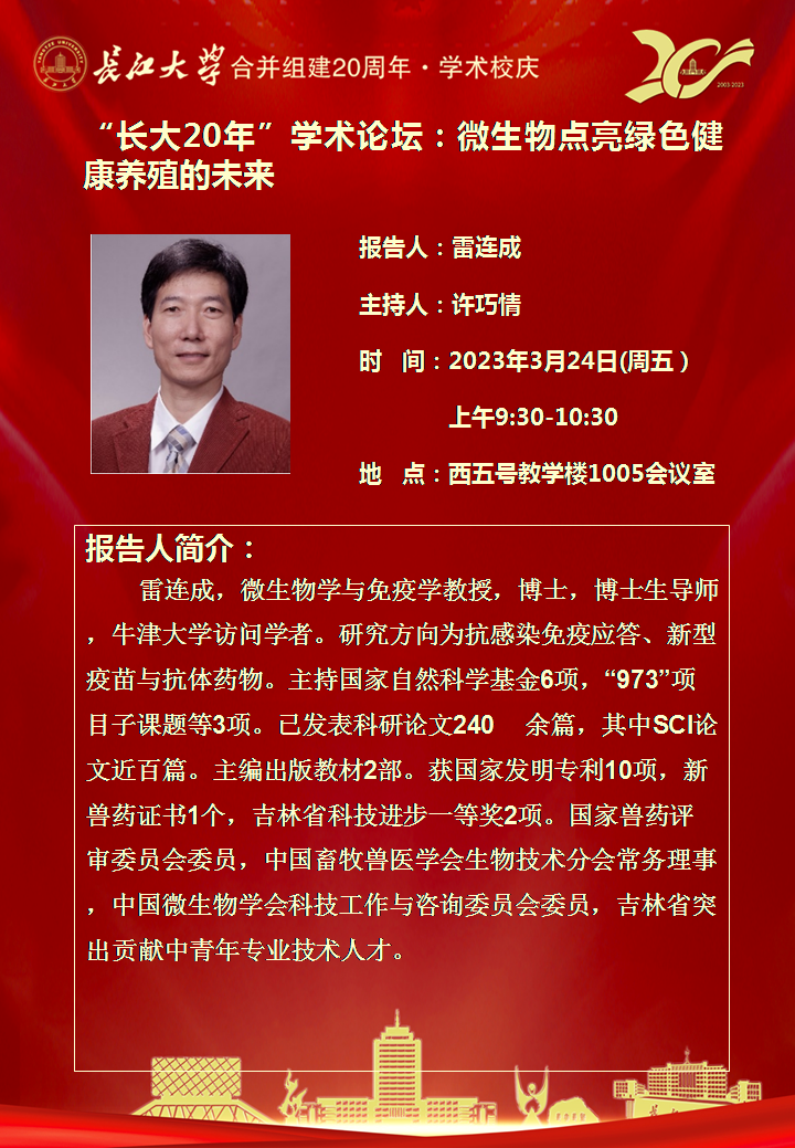 “长大20年”学术论坛暨动物科学学院2023年学术报告(第三讲)