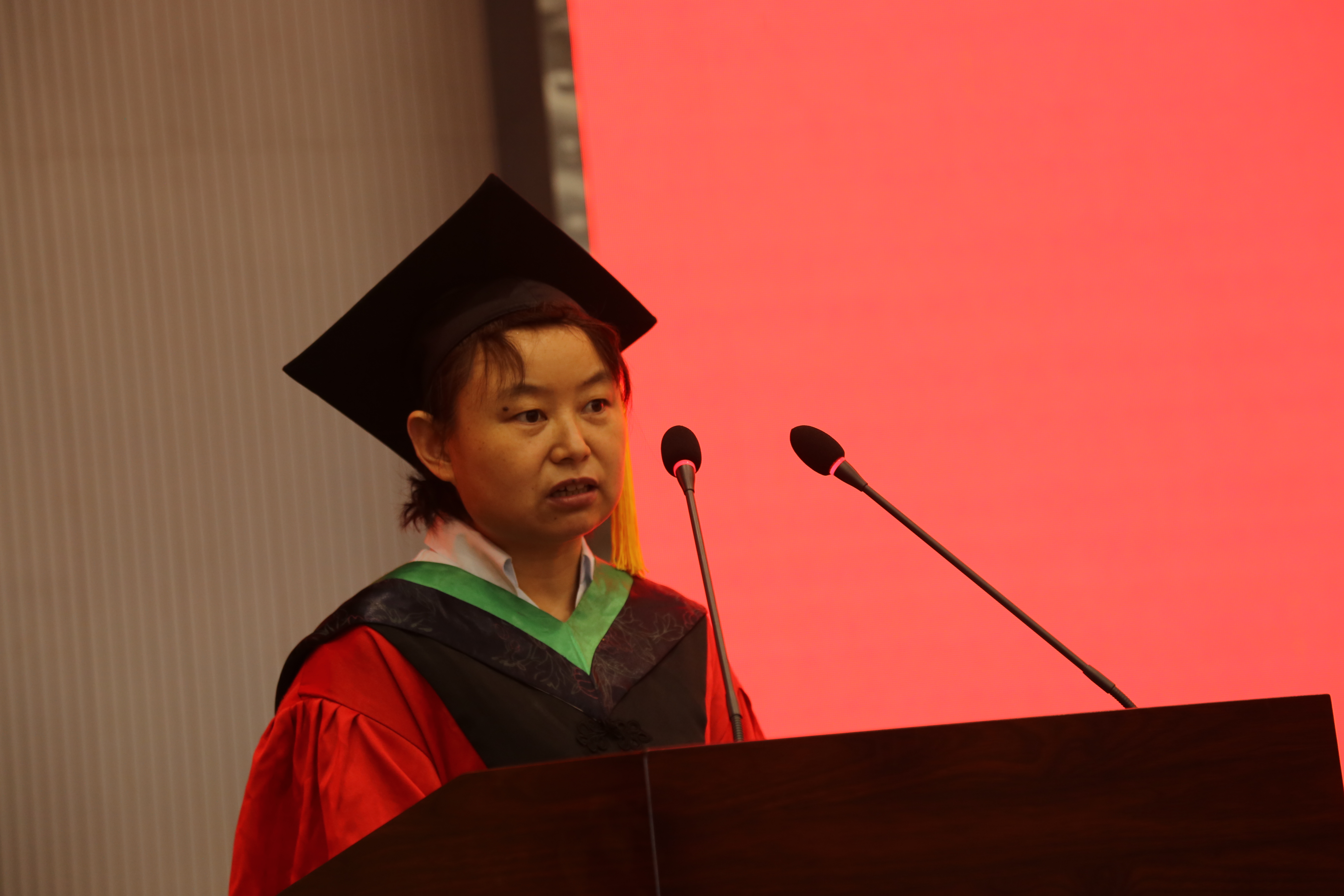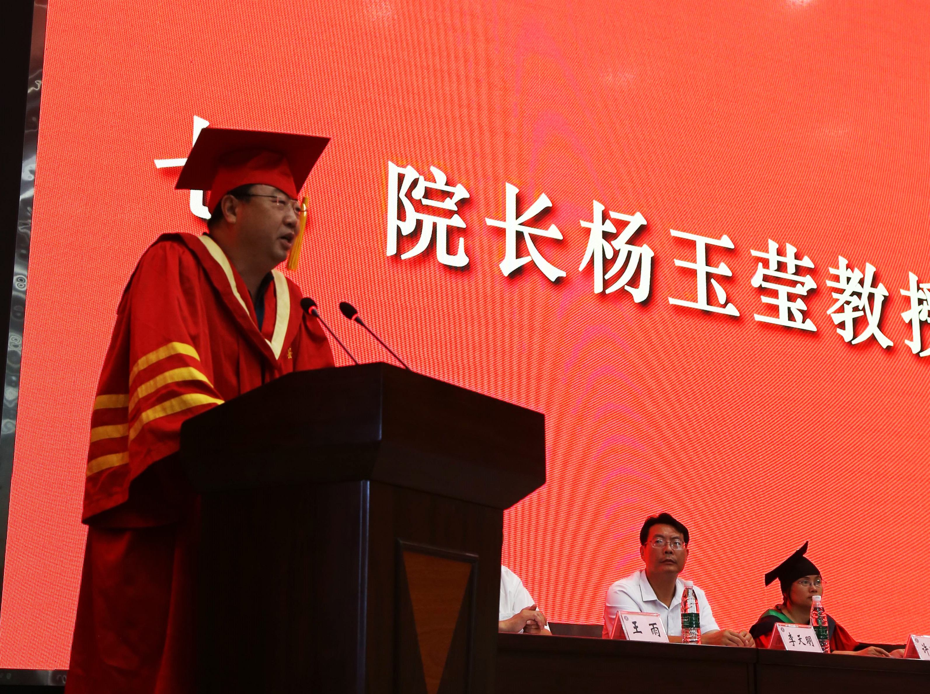 院长杨玉莹向圆满完成学业的同学们表达了衷心的祝福和殷切的希望。他指出,得人品者,得天下,要以德服人;在社会的大课堂里,既会有平川坦途,更会有崎岖山路,而且更多时候是艰、难、困、苦同行。美好,多半只是瞬间;辉煌,更是大多数人一生难及,在漫漫人生道路上要相信天道酬勤;敢爱敢恨,坚强而勇敢地到社会中去闯荡,成就自己辉煌的人生。最后杨玉莹院长深情寄语,他希望毕业生们无论辉煌还是平凡,在今后的人生道路上都能坚守对理想信念的执着,坚守对使命责任的担当,坚守对道德准则的敬畏,追求卓越,成就美满人生,并祝全体毕业生前程似锦,平安幸福。