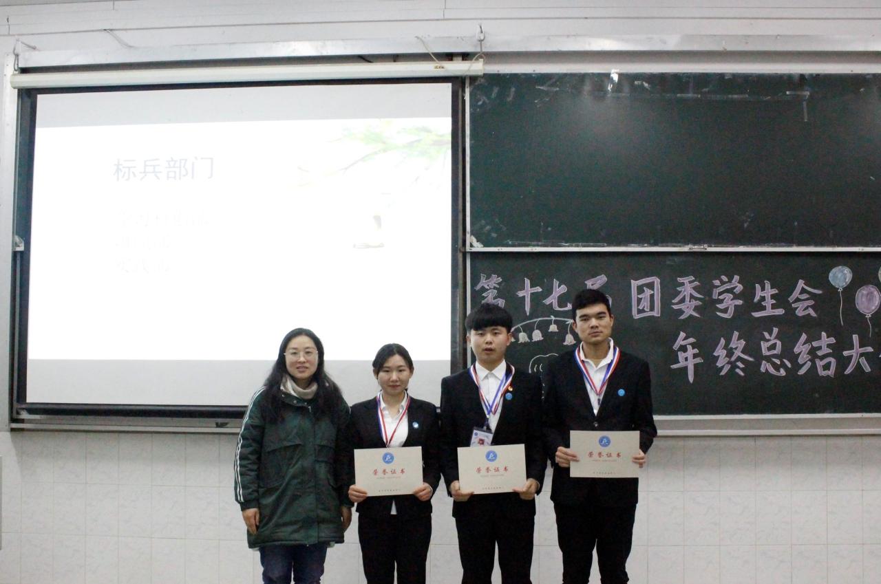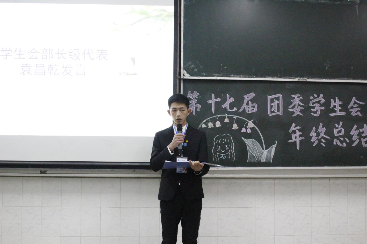 随后进行的是颁奖环节,王海洋老师分别为优秀干事、优秀部长级颁奖,学习科创部、实践部、组织部在本学期表现优异,苏晓云书记为其颁发“标兵部门”的荣誉证书。接着,干事代表洪嘉俊围绕“团结务实,奉献创新”分享自己在团委学生会的所得所感,部长代表袁昌乾以“志存高远,责任为先”为主题分享自己对学生会的见解。其后,团委学生会会长严子星将格言“星光不问赶路人,时光不负有心人”送给全体学生会成员,她希望全体学生会能在坚守态度与初心的同时,提高自身的能力,在接下来一学期的工作中尽善尽美。