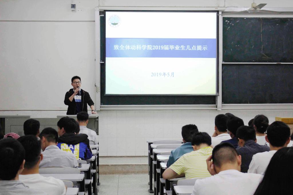 (通讯员:李月华 摄影:袁茜)大学四年时光转瞬即逝,又是一个毕业季,开云官网2019届毕业生于5月21日晚7时在五教115举行了“动物科学学院2019届毕业生年级大会”。本次会议由动医卓31501班谢洋主持,党委副书记王雨、18级辅导员王海洋老师、15级辅导员齐书荣老师及15级全体学生参加此次会议。