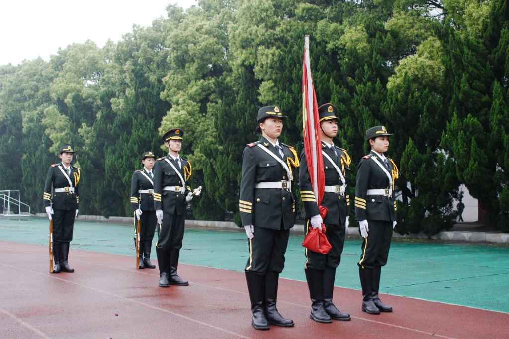 升旗仪式第一项,国旗班指挥员一声令下,护旗方阵踏着铿锵有力的步伐缓缓前行。当激昂的《义勇军进行曲》划破早晨的寂静,五星红旗迎风飘扬时,全场注视国旗,庄严、肃穆、心潮澎湃,向庄严的国旗表达着最崇高的敬意。
