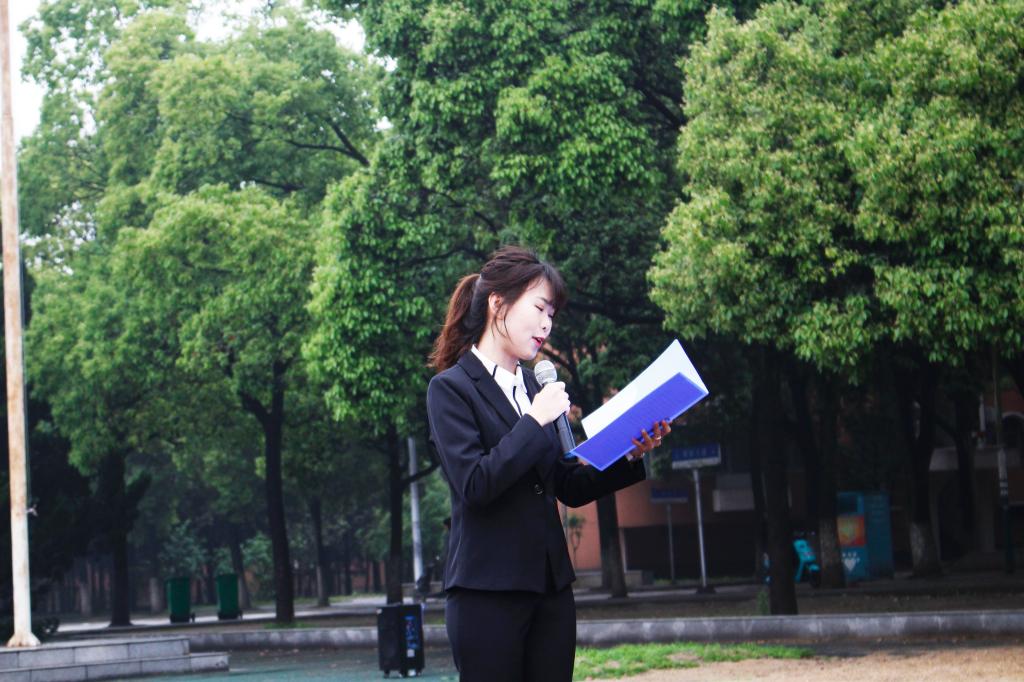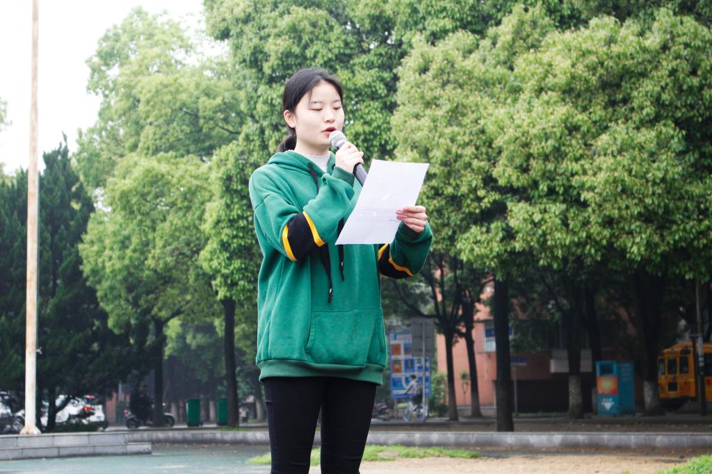 升国旗仪式最后一项,由18级学生代表徐煜带领全体同学朗诵《少年中国说》,“少年富则国富,少年智则国智,少年强则国强。”铿锵有力的话语不仅回荡在田径场上,更在每个人的心中反复吟诵。