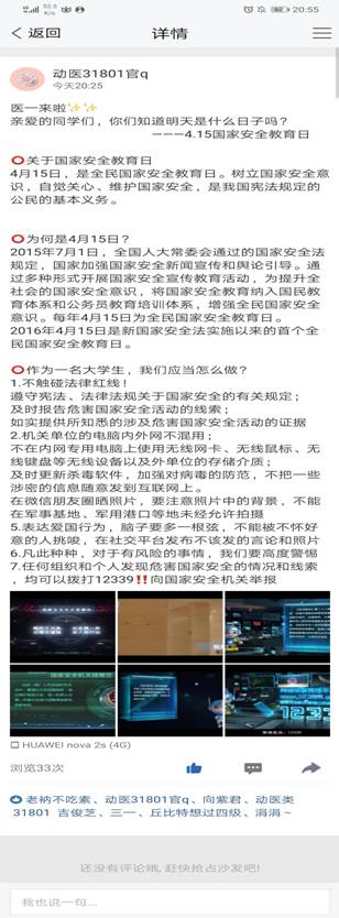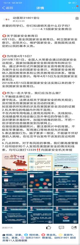 二:组织各班进行官Q宣传相关“国家安全知识”