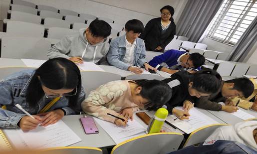 第三项,由周莹同志给所有党员下发由党委书记曾庆军书记针对学生党员留下的关于习近平总书记系列讲话精神的题目,全体学生党员就问题作答。