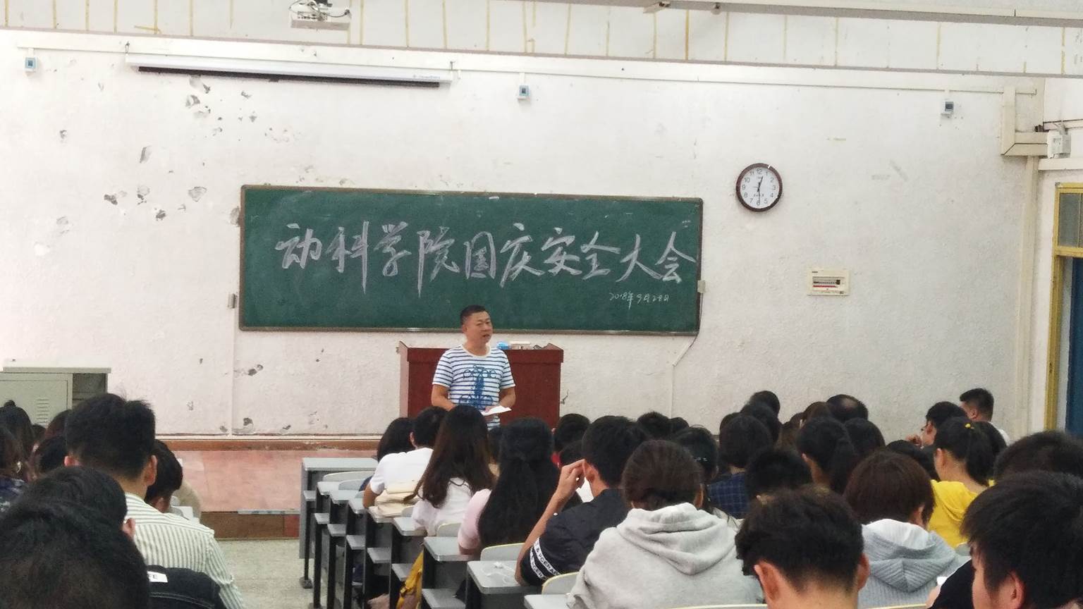 (通讯员 唐钦清)为贯彻落实“十一”长假期间学校对于学生安全教育及管理工作方面的要求,确保开云官网同学能够提高自我防护意识,度过一个安全愉快的假期。9月28日中午十二时许,动物科学学院安全教育大会于西校区五教203成功举办,党委副书记王雨、动物科学学院团委书记杨湘虹出席本次大会,16级全体学生参加此次会议。