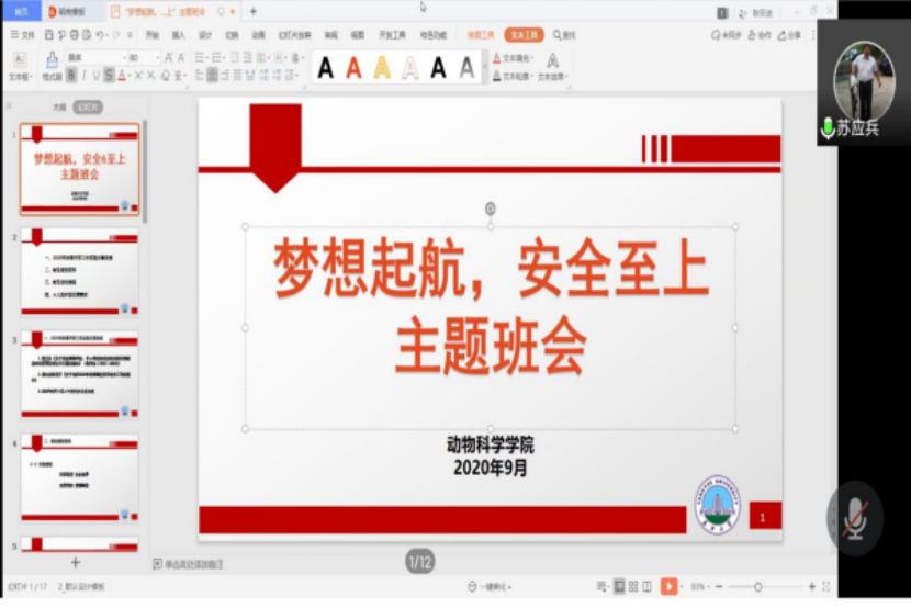 (通讯员陆波)为巩固疫情防控成果,严格落实常态化疫情防控要求,切实保障师生身体健康和生命安全,确保我校秋季学期新生顺利报到。根据学工部要求,动物科学学院组织2020级新生班主任于9月13日前,通过“腾讯会议”等在线会议的方式,对全院新生开展了“梦想起航,安全至上”主题班会。会议由各班班主任主持。
