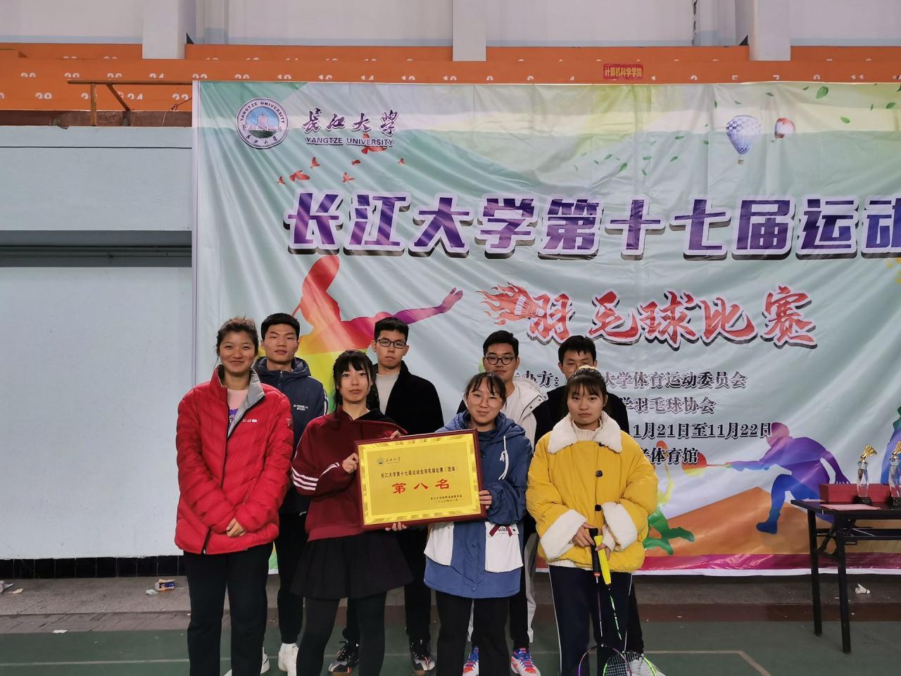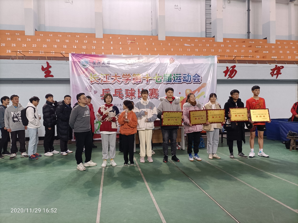 在运动会乒乓球比赛中,学院获得女子组第一名;在运动会排球比赛中,学院获得男子组第四名;在运动会羽毛球比赛中,学院获得团体第八名。