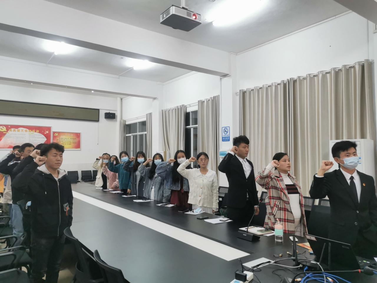 会议的第三项,申请人返场,团委书记公示票数,在确认了投票结果无异议后,会议一致表决通过,同意以上6人成为中国共青团团员。