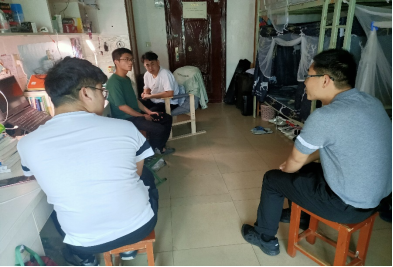 5月15日下午,动物科学学院张付贤老师前往校内风华园3栋404寝室与学生靳洪振、杜欣益、蒋承业、范向东进行面对面交流。