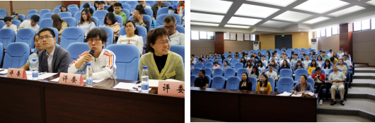 论坛邀请许巧情、杜志强、郜卫华和郭利伟四位教授担任主持,评委由杨彩侠、张明辉、张付贤和袁汉文四位老师担任。在汇报和答辩过程中,评委的精彩点评及在场同学们的提问使全场沉浸在浓厚的学术交流氛围中,为大家带来一场精彩的学术盛宴。