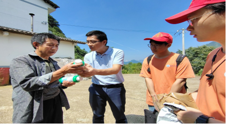 在体质测试等活动结束后,动医系教授和老师们分批带领实践队队员走访农户,实地了解每家每户的养殖情况,细致观察当地养殖环境和养殖条件,并为村民解决养殖过程中遇到的困难。考虑到养殖环境比较恶劣,老师们还向村民发放自主研发的消毒药物等,并细心讲解使用方法和注意事项,保证养殖安全,帮助村民们最大化地提高养殖效率。