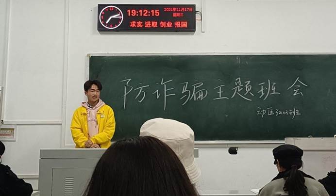(通讯员:杨湘虹 凤昊)科技发展的日新月异,信息网络普及我们的生活,但这也让很多不法分子趁虚而入,侵蚀网络空间。他们利用电话、QQ 、微信号、邮箱等作案手段不断翻新。为提高同学们的防范意识,保障财产安全,开云官网于2021年11月17日在晚自习期间组织大一同学以班级为单位举办防诈骗主题班会、动医32101班班主任张佳兰、21级辅导员杨湘虹,兼职辅导员严子星参加了本次班会。