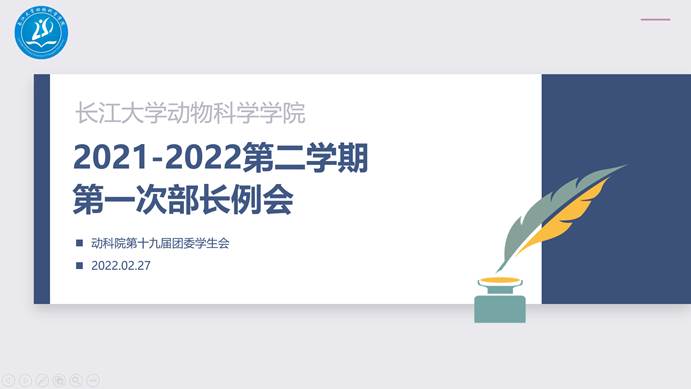 至此,第一次部长级例会到此结束。党委与团委的指导确保了学生会发展方向始终以为同学服务为宗旨,以党的思想为指导,为新学期的活动的顺利开展奠定了基础。